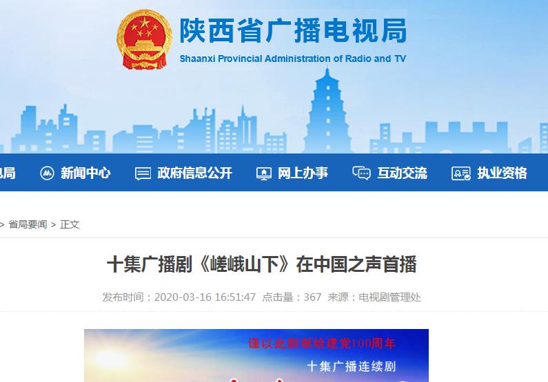 我校师生在该剧创作过程中表现出了吃苦耐劳的敬业精神,扎实过硬的专业基本功和互帮互助的团队协作精神,得到了出品方企业的高度肯定和称赞。此次参与行业项目,与陕西人民艺术剧院职业演员合作,丰富了我校师生团队的专业实践经验,也验证了我校艺术类专业的教学质量和人才培养水平。《嵯峨山下》也是98堂 “丝路之声陕西广播剧研创中心”自去年成立以来完成的首部作品,也是为建党100周年的献礼作品。该剧日前在央广播出的新闻已由陕西日报官微、陕西传媒网、陕西省广播电视局官网等多家媒体报道。(撰稿:姒晓霞 审稿:左志峰)
