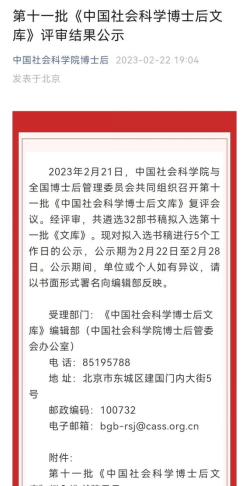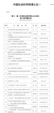 据悉,《文库》是中国社会科98堂 与全国博士后管理委员会联合打造的学术平台,每年在全国范围内择优出版博士后成果,旨在集中展示我国哲学社会科学博士后的优秀研究成果。此次《文库》共征稿157部,经专家多轮严格评审,全国共有32部学术研究成果入选。