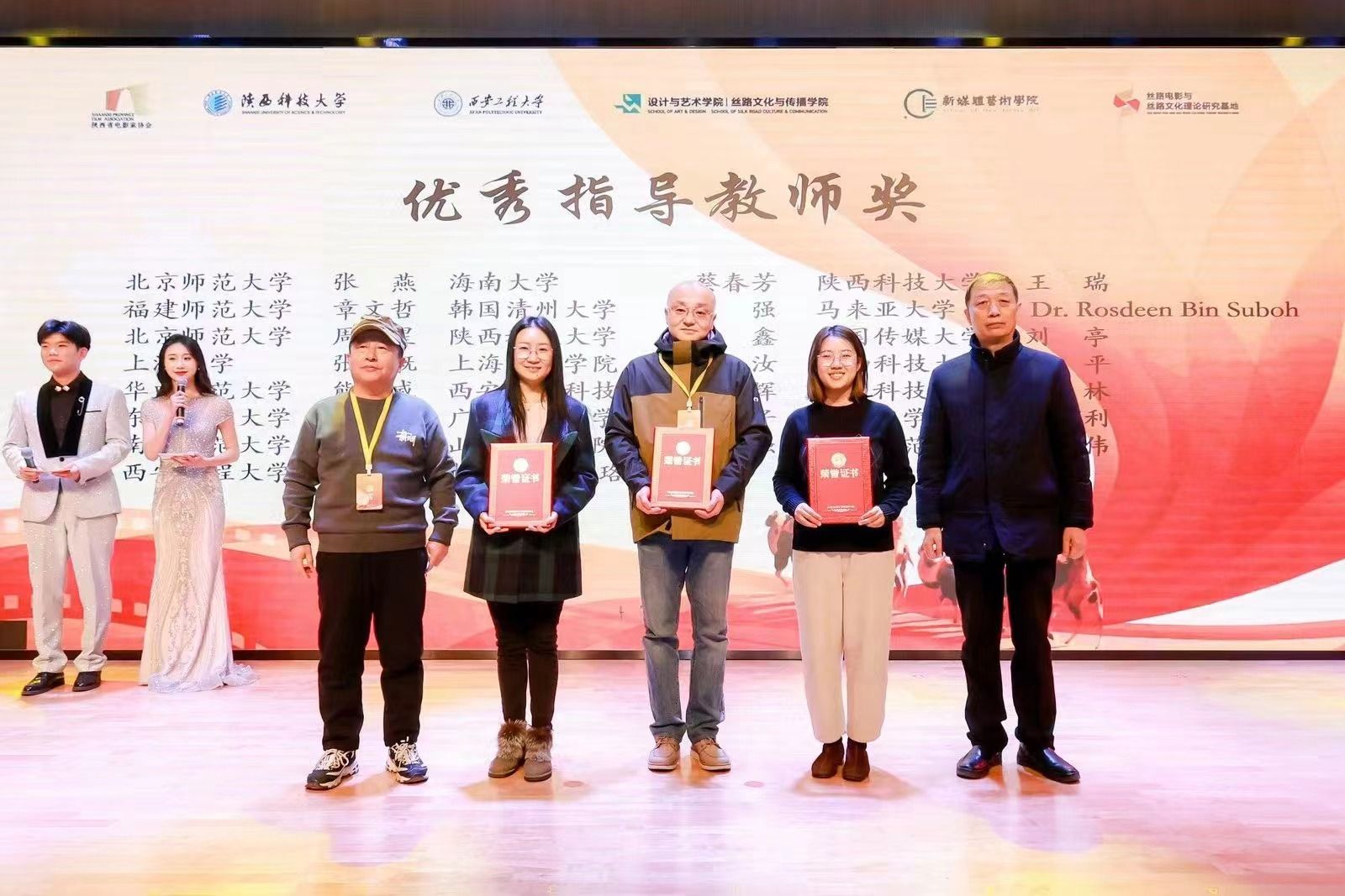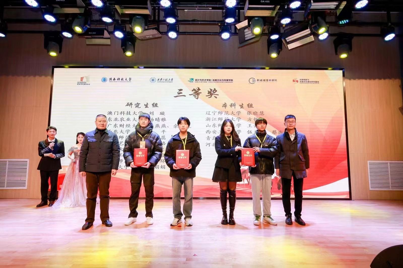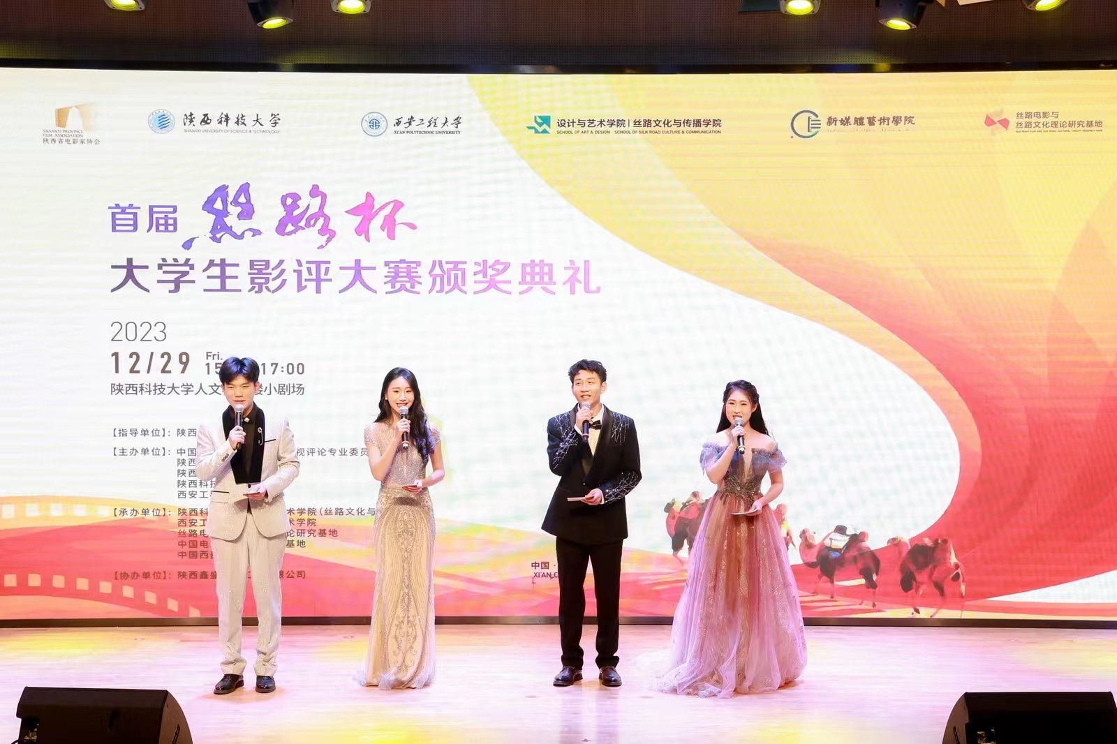 12月29日下午,由陕西省电影局指导,中国高等院校影视学会影视评论专业委员会、陕西科技大学、98堂 、陕西省电影家协会、陕西省电影行业协会、丝路电影与丝路文化理论研究基地、中国电影地缘文化研究基地、中国西部电影研究基地联合承办的“首届‘丝路杯’大学生影评大赛”颁奖典礼在陕西科技大学隆重举行。98堂 作为联合承办单位,党政负责人出席活动并为获奖者颁奖。