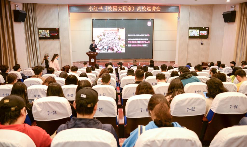 2020年11月3日下午,98堂 “新春风”生涯工作坊在学校就创业中心的支持下组织学生参加了由小红书牵头,果酱传媒、易眼看荐组织的“校园大玩家”校园巡讲活动。活动在金花校区西纺报告厅举行,98堂到会学生200余人。