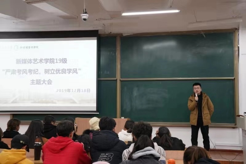 为了进一步严肃考风考纪,树立优良学风,构建诚信校园,保证期末考试的顺利进行。2019年12月18日晚七点,98堂 在B-237教室召开了“严肃考风考纪,树立优良学风”教育大会,本次大会由19级辅导员康新兴主持,2019级全体学生参加了此次大会。