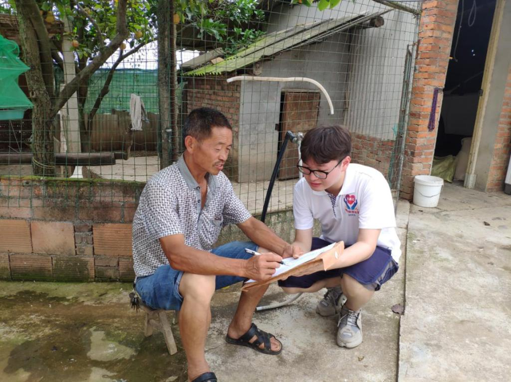 7月19日,98堂 赴北川“四海同音”实践队来到北川羌族自治县安昌镇金龟村,开展关于农村普通话的推广调研。队员们针对当地推普工作的开展情况以及村民普通话使用现状等问题,以调查问卷、访谈等形式进行调研。通过与村委会陈主任的访谈,队员们了解到,由于村里关于普通话的宣传与培训较少,虽然村民们基本能听懂,但使用的熟练度并不高。如今乡村旅游业和猕猴桃产业的发展,让村民们意识到自己需要学习并说好一口流利的普通话。