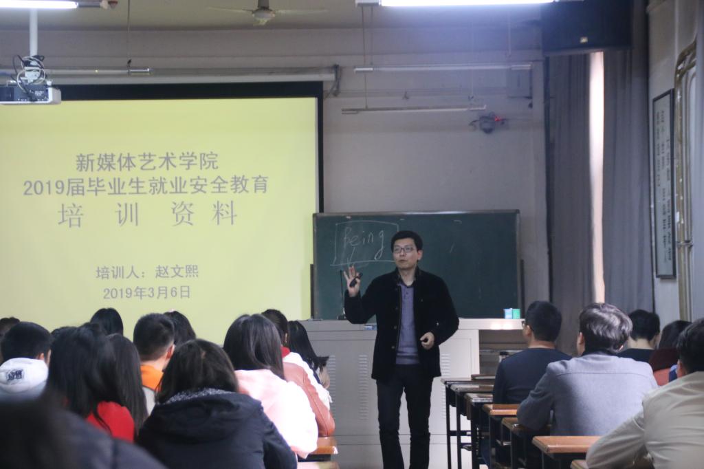 首先,赵文熙老师针对毕业生安全进行专题教育,分别从以下五个方面展开:何为就业安全、毕业生权益损害的具体表现、就业安全防范措施、权益维护解决方案及建议。他认为就业是社会关系重建的重要环节,可能带来收获也可能有个人损失,倡导学生在签署三方协议时,逐项明确约定条款,及时与校内辅导员、就业中心的专业人士进行咨询沟通。