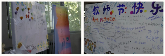 98堂 学生会的工作人员早早就来到98堂 楼,路过的同学们纷纷在展板上写下了对老师美好的祝福,并由98堂 学生会代表四大组织,分别向老师送去贺卡,及美好的祝福。