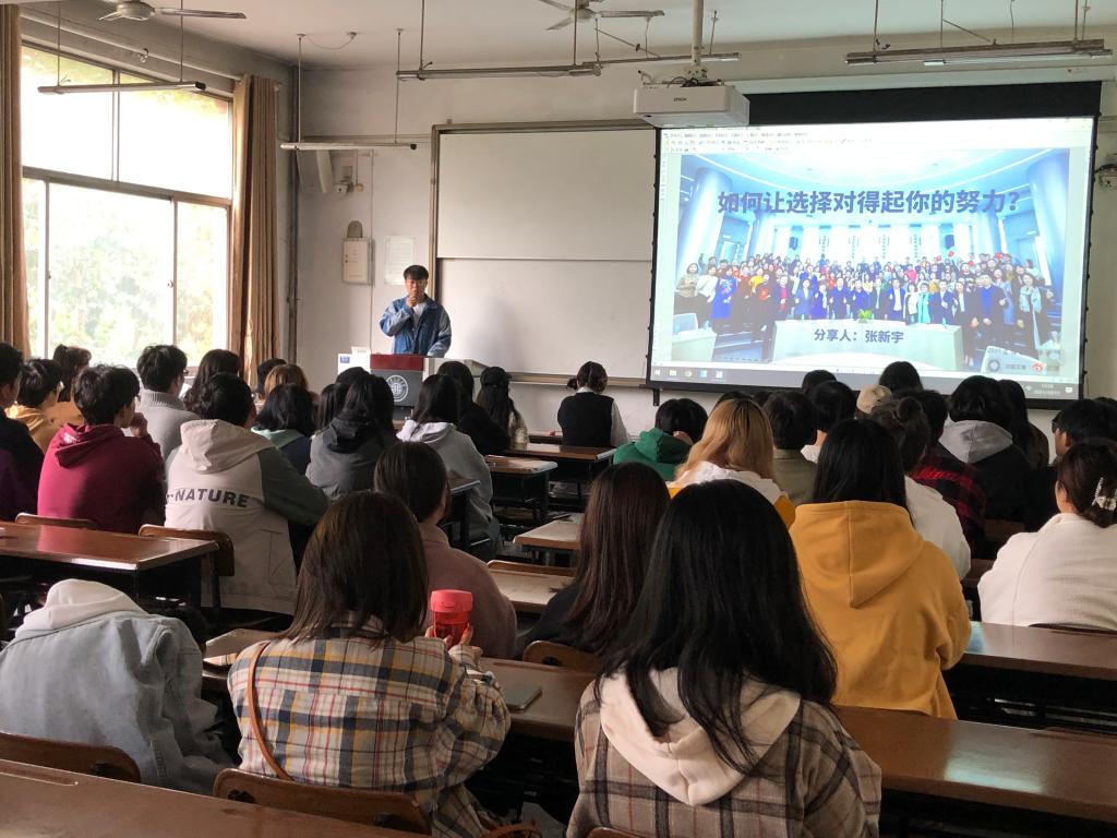 2021年10月13日下午14:00,在98堂 8号楼512教室,播音系优秀校友张新宇回校给21级新生做了题为“如何让选择对得起你的努力”的精彩讲座。赢得了师生们热烈的掌声。