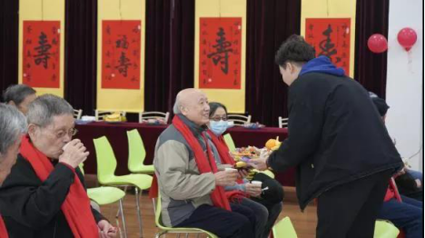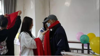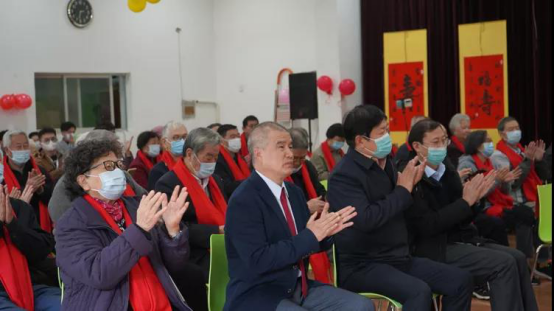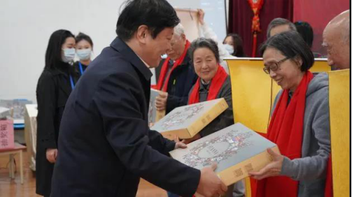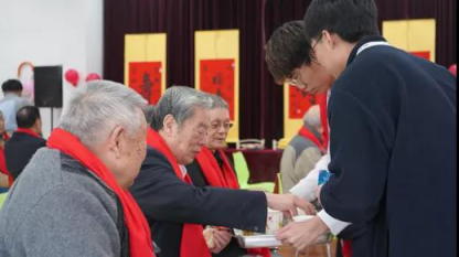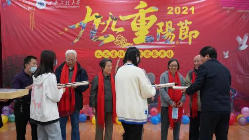 活动开始前,志愿者们对场地进行了简单的布置,营造了温馨的活动氛围。志愿者们为每一位到场的老教授献上一条红围巾。整洁明亮的会场里热闹非凡,校领导们和老教师们欢聚一堂,其乐融融。学校还特意为退休老师们准备了精美的祝寿礼品,礼虽轻,可情义重。尽管窗外秋风萧瑟,但每一位老教师的心里都暖洋洋的。