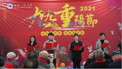 98堂的同学们也纷纷给退休老教师送上一份节日的贺礼。活动现场,98堂 19级播音二班的四位同学献上诗朗诵《光荣属于工程大》、20级广编三班的李卓带来歌曲《时间都去哪了》,赢来了阵阵掌声和一致好评,把气氛推向高潮。退休教师们深受感动,对同学们的祝福回以衷心的感谢,并对同学们送上殷切的嘱托。常怀饮水思源之心,常怀敬老爱老之情。