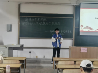 接下来院青分队队长夏轶龙学长分享到青分队参与的各项志愿活动。例如:疫情期间志愿者服务、“践行党史学习教育,助力文明城市创建”志愿服务、“九九重阳节 浓浓敬老情”等等多项活动,带动了同学们的参与热情。夏轶龙学长呼吁大家大胆的投身到社会志愿服务活动中去发挥青年团员的义务和职责,展现青年团员的活力。