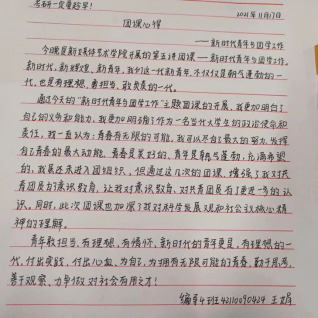 本次主题团课,同学们深刻了解到青年兴则国家兴,青年强则国家强。青年一代有理想,有本领,有担当,国家就有前途,民族就有希望,新时代青年肩负着新时期的历史使命担当。