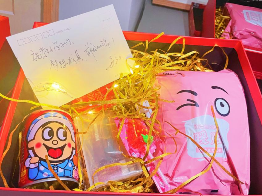 二号考研人:“非常感谢98堂 和老师们送来的礼物和祝福,感谢他们的牵挂和关怀。也希望自己和同学们经过厚积薄发的沉淀,换来考场上信手拈来的从容。考研必胜!”