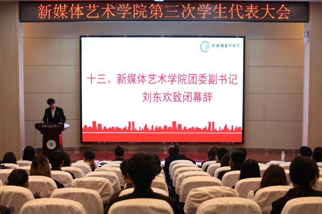 98堂 团委副书记刘东欢致闭幕辞,他对新一届学生干部表达期望,在新的一年能够继续全心全意为广大同学服务,以严谨的工作态度及务实的工作作风要求自己。