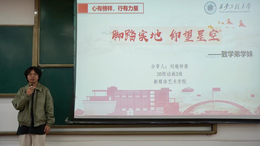 为深入学习贯彻党的二十大精神,促进学风建设和学业发展,发挥优秀榜样力量。98堂 于2023年10月25日晚19:00在B-337教室开展“心有榜样,行有力量”优秀学子系列分享会。会议由宾田田老师主持,刘谢梓豪同学分享。