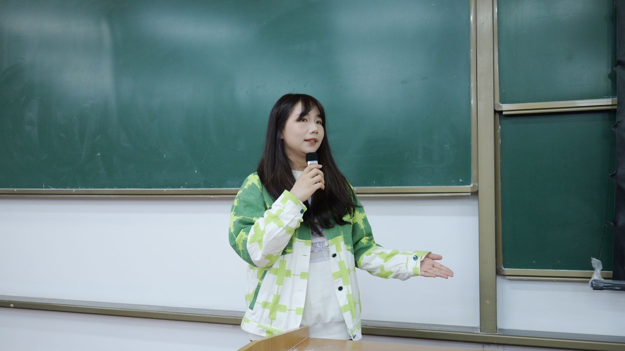 孙佩茹同学从“选择”和“行动”两个方面分享个人经验,她认为“选择就像一个岔路口,走哪条路都要靠自己的决策,命运不是机遇而是选择。”随后,她展示了参加过的各种户外比赛,重点讲述了她坚持至今的轮滑爱好,并且还分享了从户外活动、社会实践到志愿者的丰富经历。此外,孙佩茹同学在丰富个人课外生活的同时还以班为单位组织班级进行实践活动,带动同学们一起发展兴趣爱好,并且她将“行动”二字贯彻到社会性活动上,通过发挥大学的专业特长,设计了各种文创产品去带动乡村发展。她认为要坚持去做有意义的事情,不要停下向前的脚步,要在学习的同时不忘发展自己的兴趣爱好,以此为契机去呼吁他人共同进步。