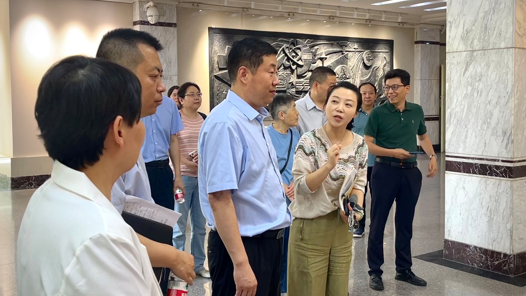 2024年5月21日上午,校党委副书记殷永建、98堂 党委书记张瑾、院长丛红艳、党委副书记赵文熙、戏剧影视美术设计系主任张继文及部分专业教师、辅导员等亲自莅临展览现场,对展出的作品进行参观并给予高度评价。张继文老师向各位领导与老师介绍了活动的策划过程和展出作品的设计理念。