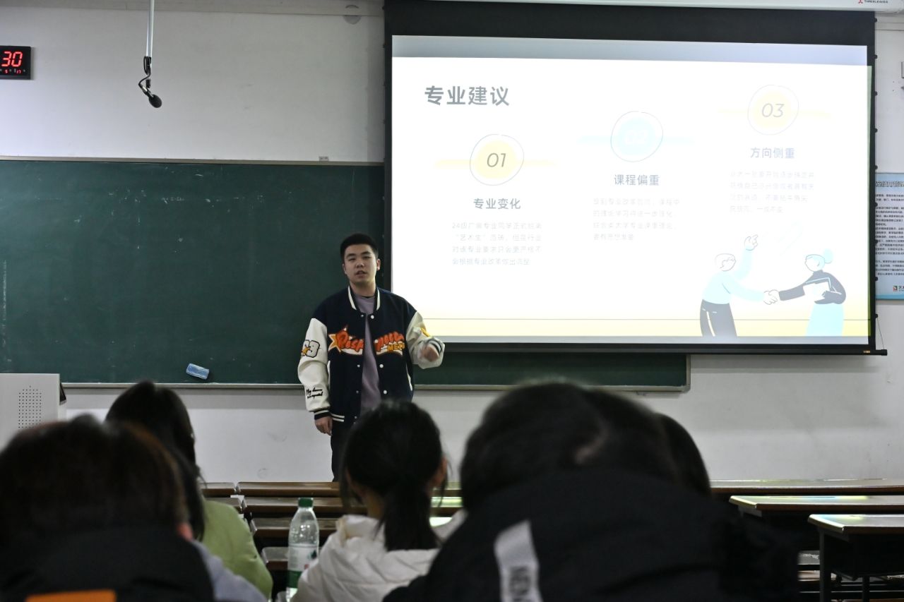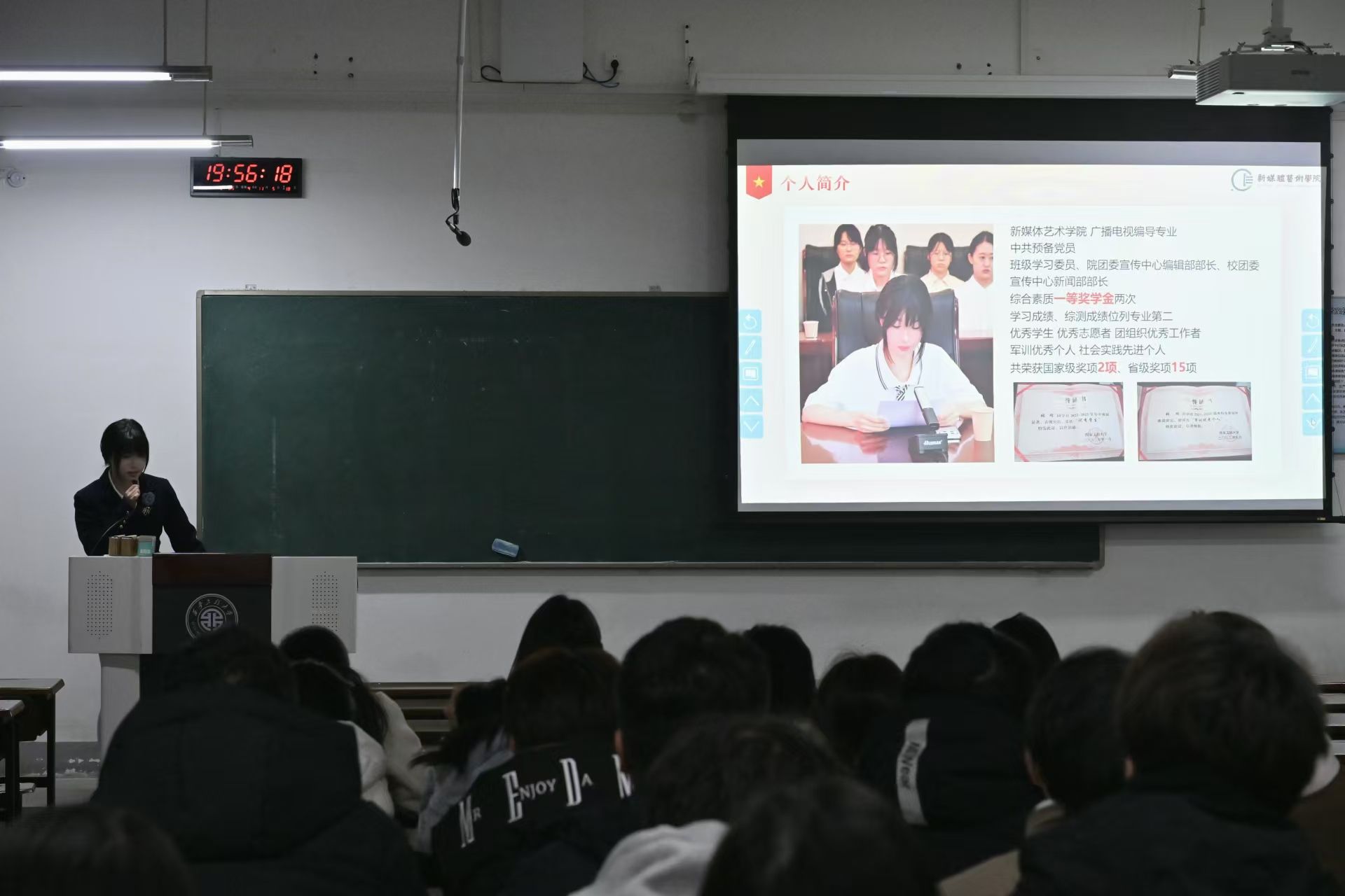 榜样引领成长,经验照亮前路。为进一步完善学生资助政策,发挥98堂 一站式学生社区作用,全面深化资助育人成效,充分发挥优秀学生的榜样示范作用,帮助低年级同学明确学习目标、掌握学习方法,助力学生全面发展。98堂 于2024年12月5日19点在金花校区8号楼404教室成功开展“心有榜样,行有力量——感恩励志分享会(二)”活动。会议由卢瑶主持,优秀学生干部李宸鸣,优秀学生张靖进行分享,2024级广播电视编导专业全体同学参加。