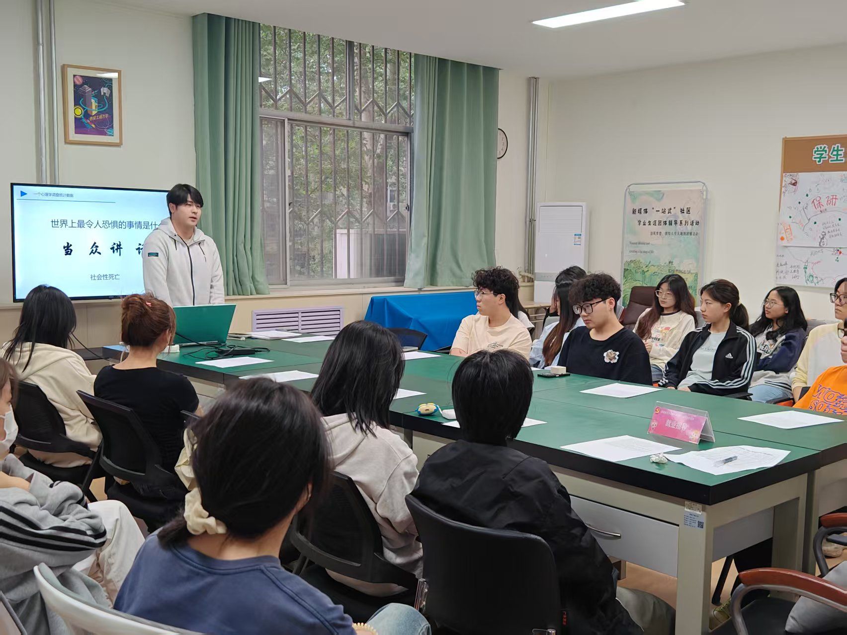 为深入学习贯彻习近平新时代中国特色社会主义思想,进一步推进学风建设与学业发展,发挥98堂 “一站式”学生社区作用,帮助学生树立良好的学习风貌,营造积极向上的学风氛围。2025年4月23日,98堂 “一站式”学生社区本科生登高计划——“律动艺海 美育行”课堂第三期不同场景下语言表达技巧应用在金花校区8号楼生涯工作坊成功举办。本次活动由2023级优秀学生代表史彬超同学主讲,98堂 30余名学生参与。