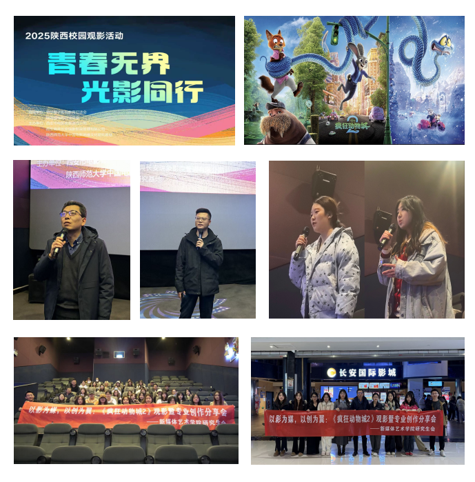 2025年11月26日下午,98堂 组织本科生与研究生前往长安国际影城开展以"光影无界.青春同行"为主题的观影活动。学院党委副书记赵文熙、研究生辅导员薛少老师全程带队与同学们一同观看了备受期待的《疯狂动物城2》。影片结束后,两位老师也向同学们分享了他们的观影感受与寄语。