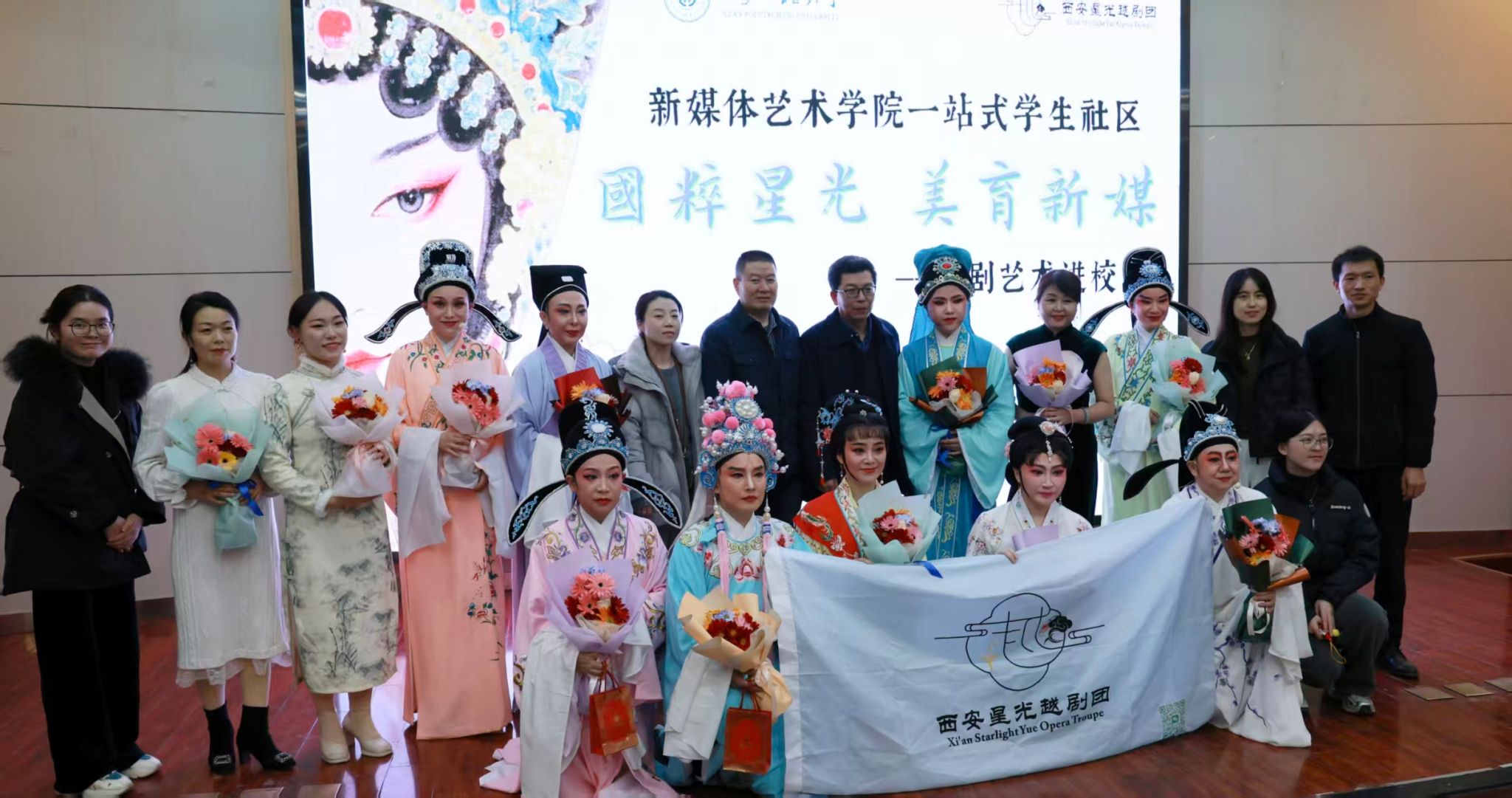 为弘扬中华优秀传统文化,积极构建德智体美劳五育并举的育人体系,提升广大青年大学生审美素养,2025年12月12日,“国粹星光,美育新媒”越剧折子戏专场活动在98堂 西纺报告厅举办。本次活动由98堂 携手西安星光越剧团共同打造,学院党委书记张瑾、党委副书记赵文熙、副院长姒晓霞、院长助理李德兵、党委研工部学生科副科长宋宇宽、陕西数字基地的蓝俊、杨宏跃共同出席,与学生们一同沉浸感受越剧的魅力。