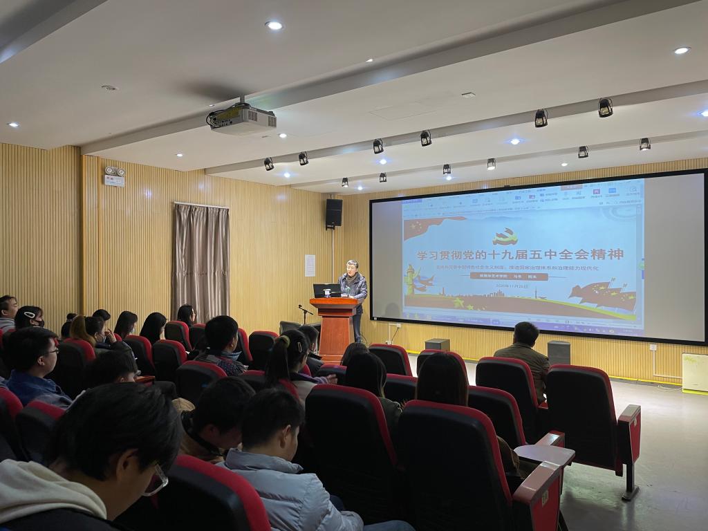 院长马冬从学习贯彻党的十九届五中全会精神角度,宣讲了坚持和完善中国特色社会主义制度、推进国家治理体系和治理能力现代化的相关内容。马冬强调,认真贯彻落实全会精神,坚持和完善中国特色社会主义制度、推进国家治理体系和治理能力现代化,进一步把我国制度优势巩固好、发展好,并更好转化为国家治理效能,为实现“两个一百年”奋斗目标、实现中华民族伟大复兴的中国梦提供有力保证,是当前全党全国人民的一项重大政治任务,也是我们理论工作者义不容辞的政治责任。我们要在坚持和完善中国特色社会主义制度的伟大实践中,进一步推进国家治理体系和治理能力现代化的理论研究,更好地为党的理论创新提供学理支撑。