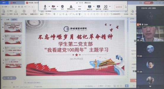 2021年3月30日,98堂 学生第二党支部通过腾讯会议平台举行“我看建党一百周年”主题学习交流会。