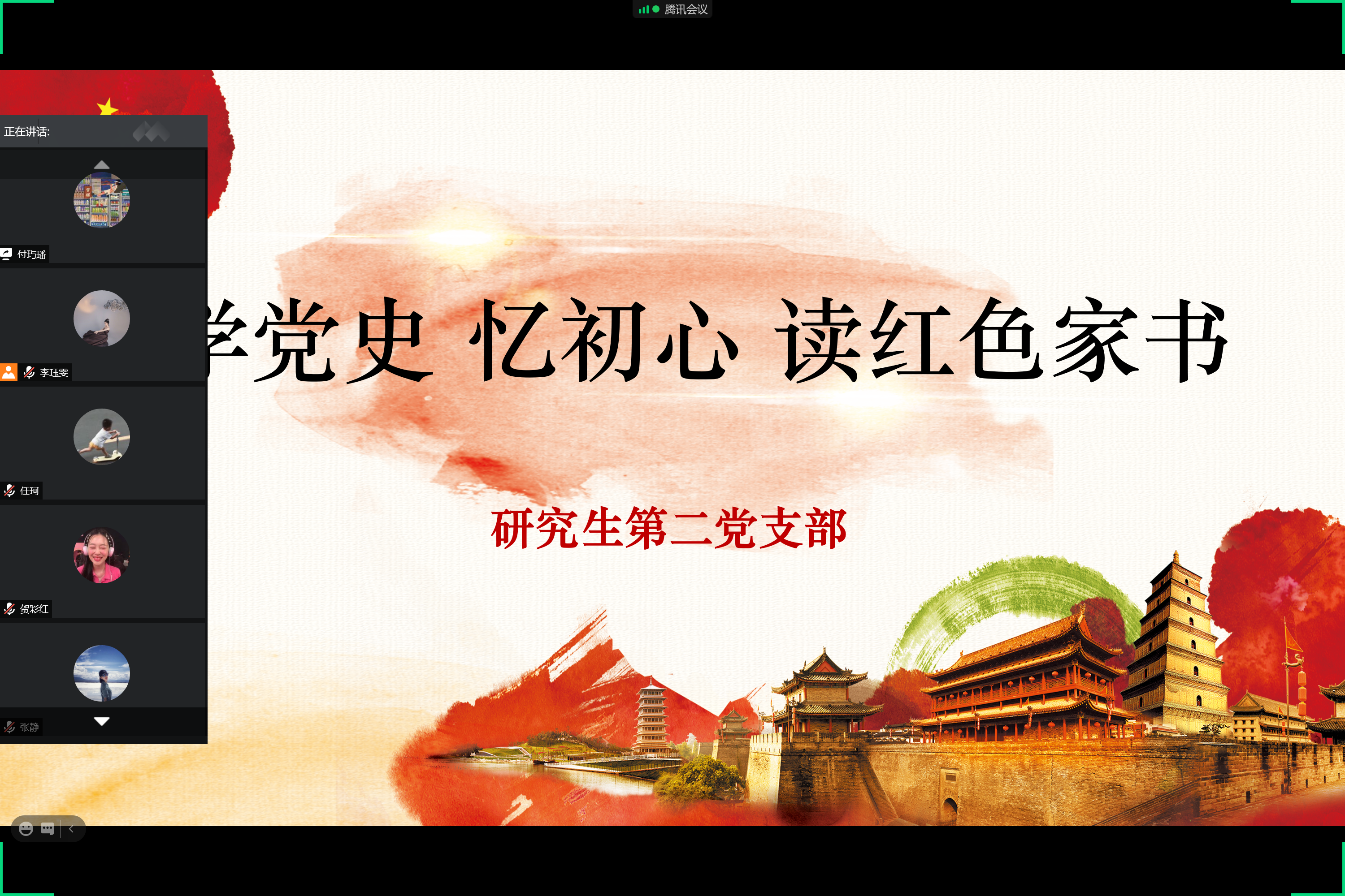 5月6日下午1点,98堂 研究生第二党支部组织开展“学党史 忆初心 读红色家书”主题党日活动,支部书记张瑾主持,全体党员参加本次活动。