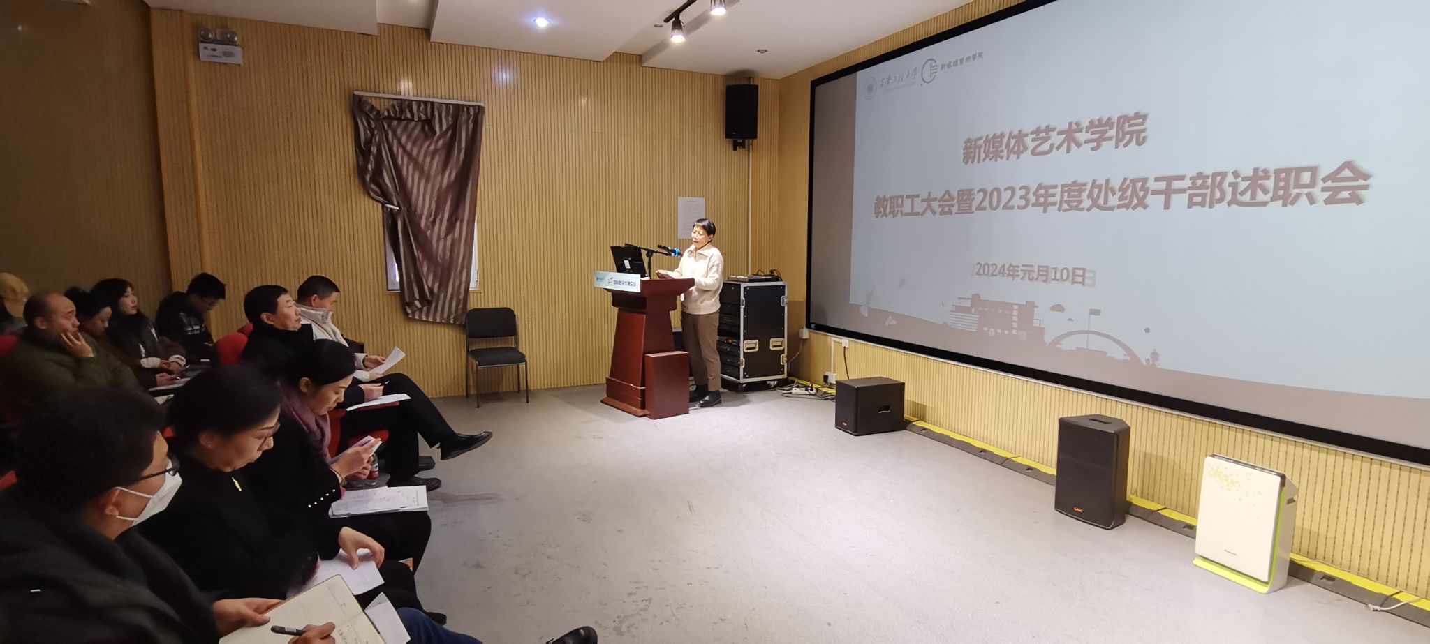 98堂 召开全体教职工大会暨2023年度处级干部述职会