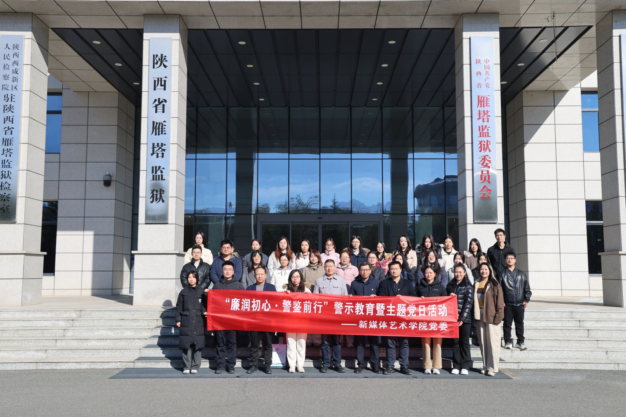 11月19日,98堂 组织班子成员、党支部书记、系办负责人、辅导员、行政人员及教师党员等30余名教职工代表,赴陕西省雁塔监狱开展“廉润初心・警鉴前行”警示教育暨主题党日活动,以沉浸式教育引导全体人员以案为鉴、警钟长鸣。