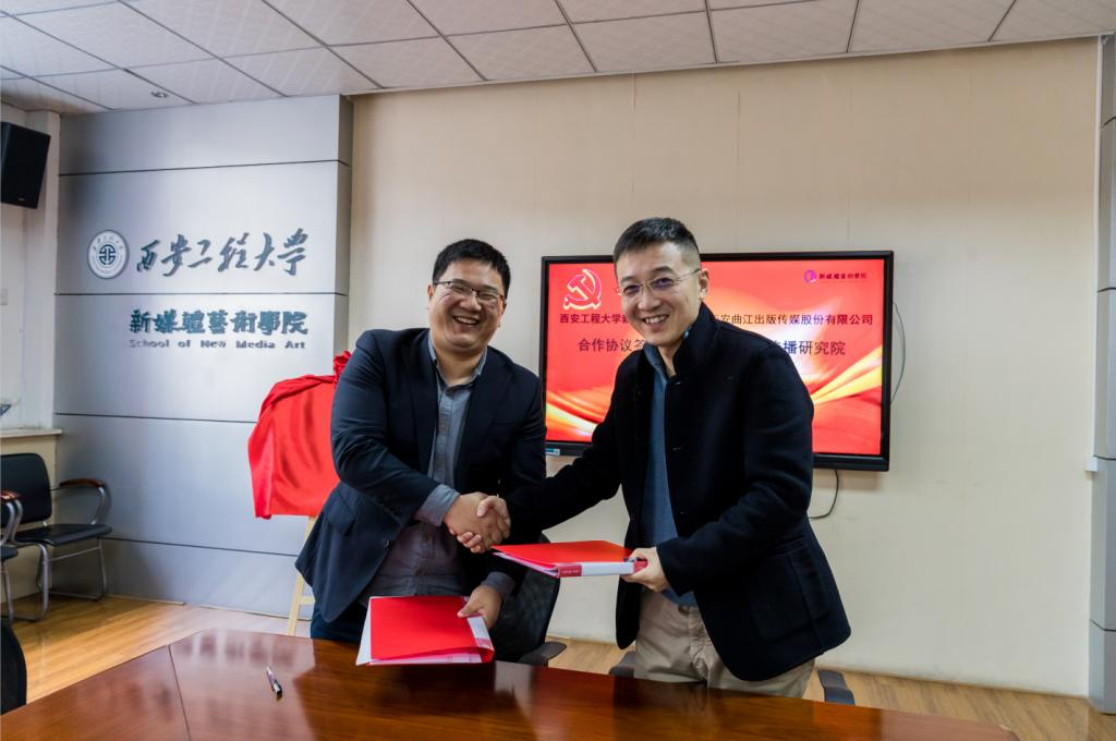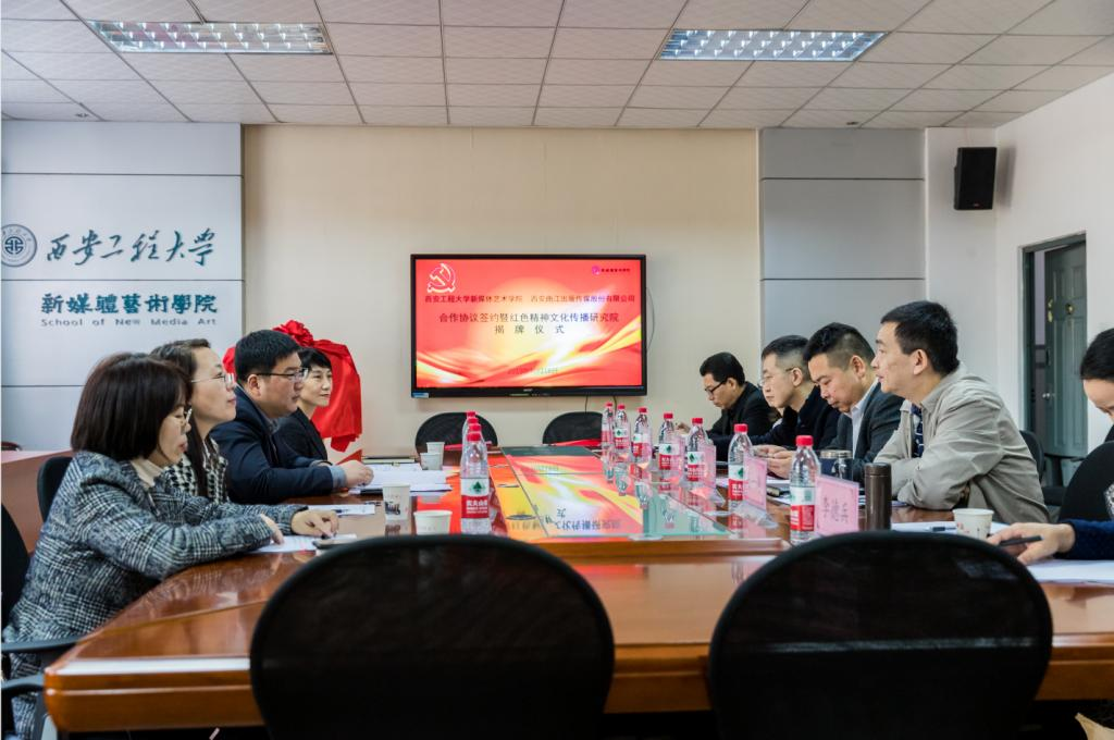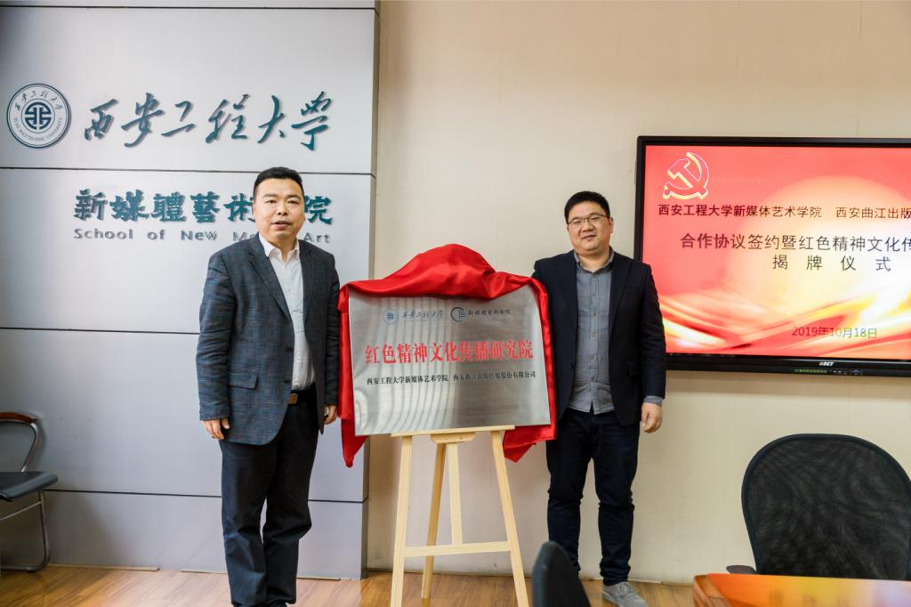 在326会议室举行西安曲江出版传媒股份有限公司合作协议签约暨红色精神文化传播研究院揭牌仪式。校党委副书记赵小峰出席,西安曲江出版传媒股份有限公司总经理孙华及相关企业负责人、98堂