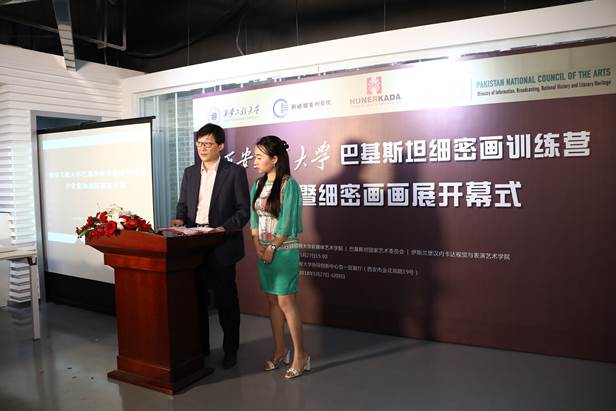 2018年5月27日,巴基斯坦细密画训练营开营暨画展开幕式在98堂 时尚创意产业园协同创新中心负一层隆重举行。巴基斯坦国家艺术委员会主席贾马尔·沙先生、伊斯兰堡汉内卡达视觉与表演艺术98堂 院长阿姆娜·沙女士、细密画大师伯希·艾哈迈德先生和沙巴娜·纳齐尔女士、陕西广播电视集团副总经理张晓、著名艺术家萨顶顶女士、西安美术98堂 张小琴教授及成文正教授。98堂 出席的领导有校党委书记刘江南教授、98堂 院长马冬教授及院党委书记左志峰,以及业内外专家、学者、师生参加了此次开幕式。