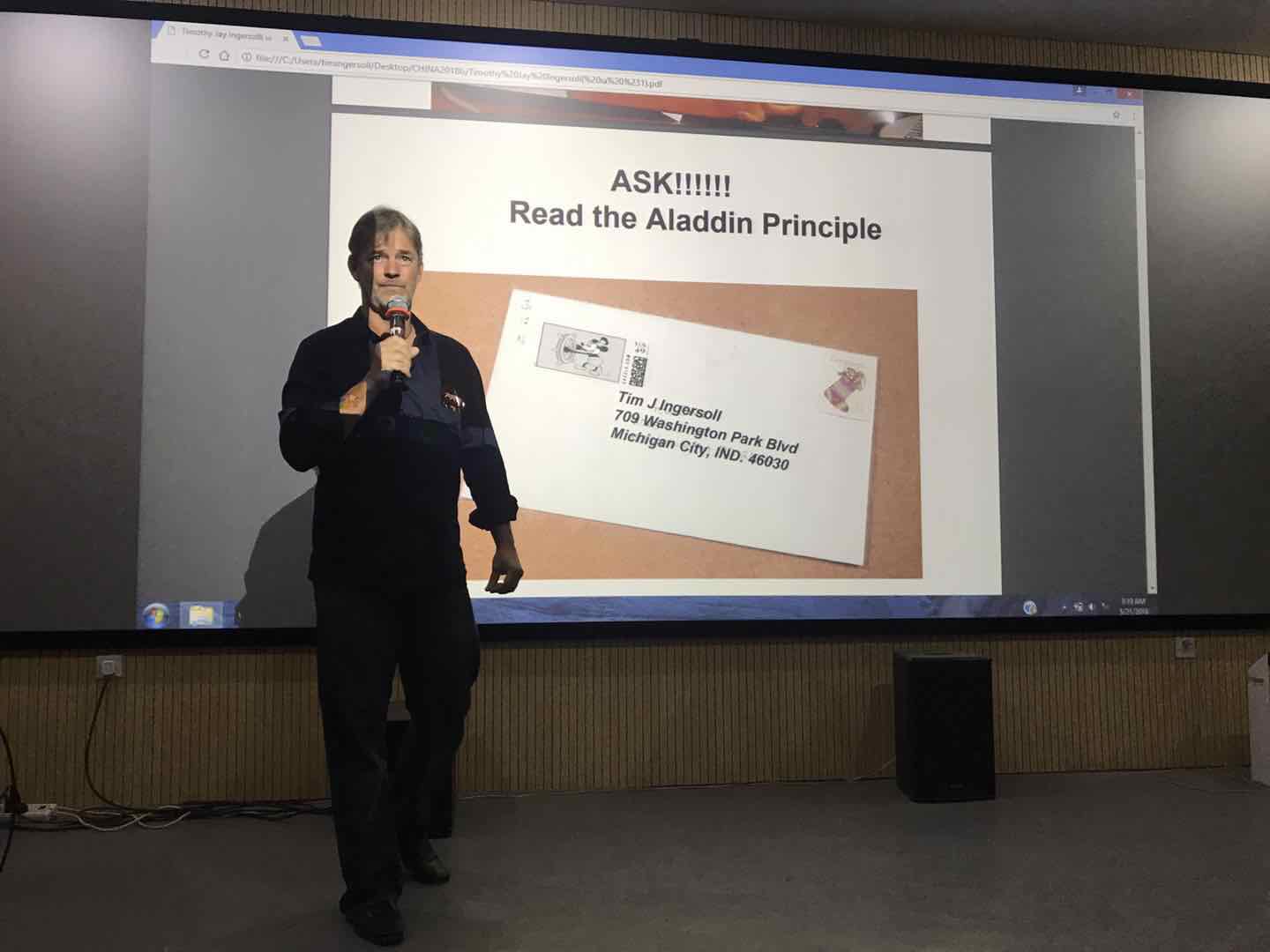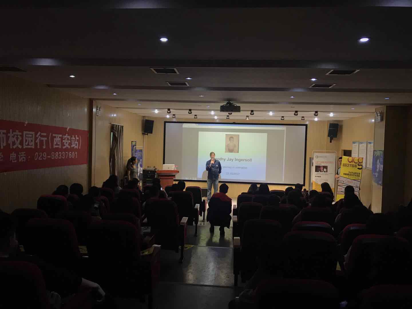 5月21日,来自美国加州艺术98堂 的Mr. Ingersoll 在98堂 金花校区影片观摩室举行了“Mr. Ingersoll 的大师之旅”的主题演讲。