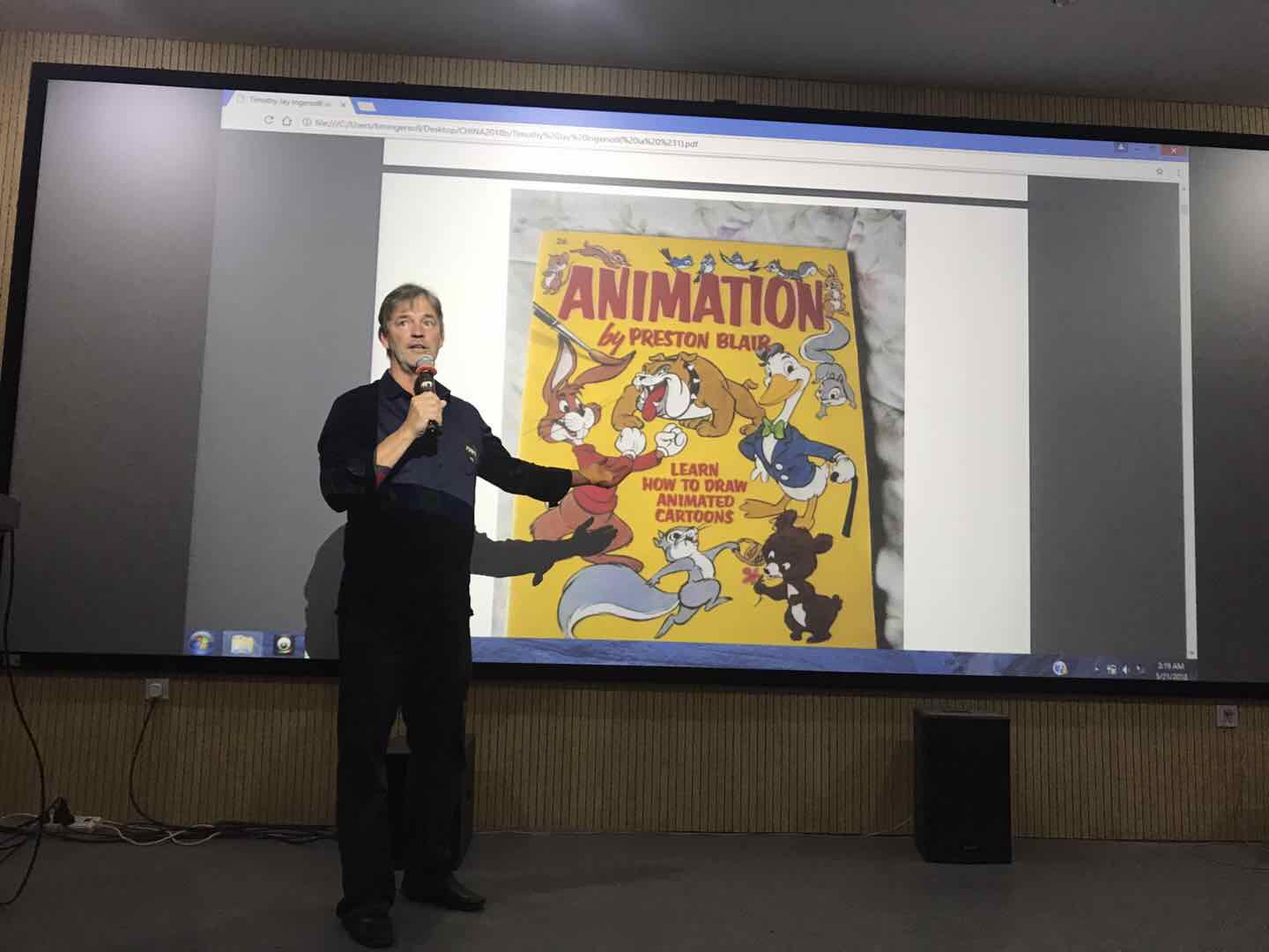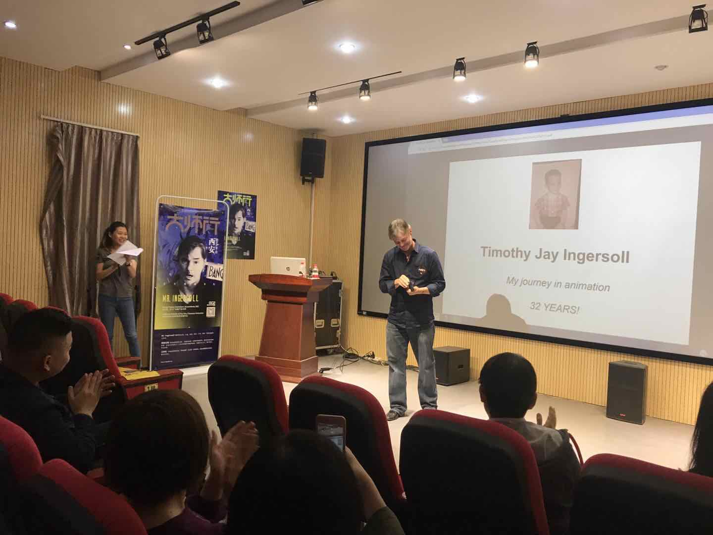 Mr. Ingersoll 结合自身在迪士尼和梦工厂34 年的动画制作经验,生动讲述了动画12 则、动画的秘密、现场拍摄实物做参考扮演等内容。Ingesoll先生就职于加州艺术98堂 角色设计,曾任职于梦工厂动画工作室、Baer 动画工作室、迪士尼动画,参与动画制作的《美女与野兽》特别版获得了奥斯卡金像奖。