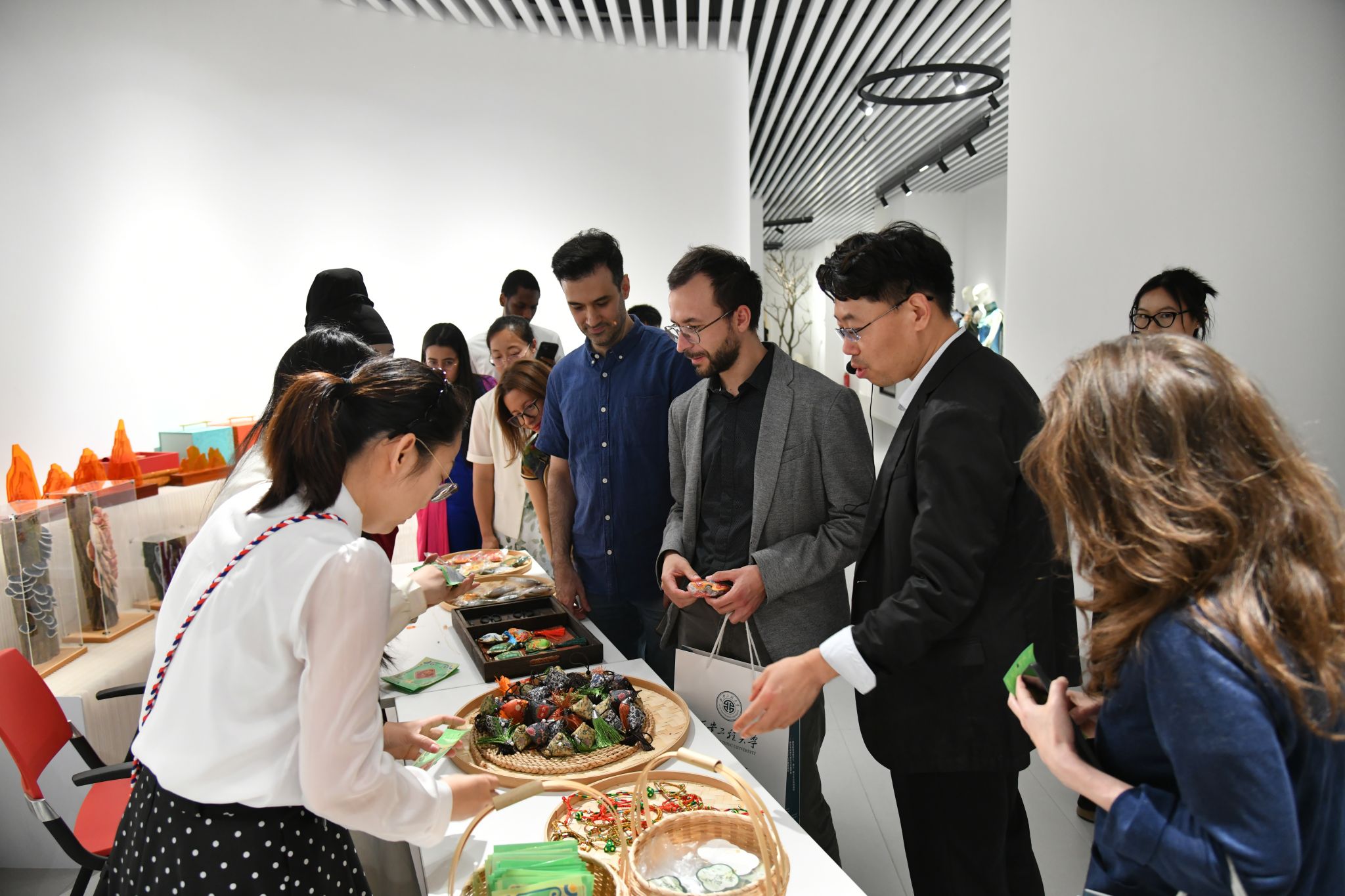 会场上,丰富多彩的中国传统文化展示环节吸引着众人的目光,外国专家朋友们被中国古典民乐演出、汉服表演、现代服饰秀深深震撼,不时报以热烈的掌声。与会外国专家还参观了我校中华美服饰文化中心和服装与艺术设计98堂 2025届毕业生毕业作品展,对我校办学特色有了更深刻的了解,对华夏服饰文化的深厚底蕴与独特魅力有了更深刻的领悟。专家们还沉浸式体验中国传统民俗文化,亲手制作香包和漆扇,用一针一线绣出端午安康的美好寓意,用一笔一画勾勒出东方美学的雅致品味。
