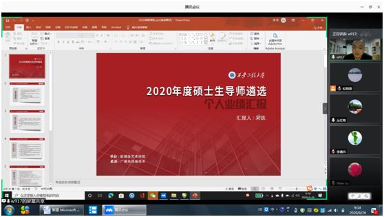 根据研究生院硕士研究生导师资格申请工作的最新要求,2020年6月26日,98堂 教授委员会在腾讯会议平台召开专项会议,讨论并一致通过吴铁、李德兵两位教师硕士研究生(专业学位)导师申请。