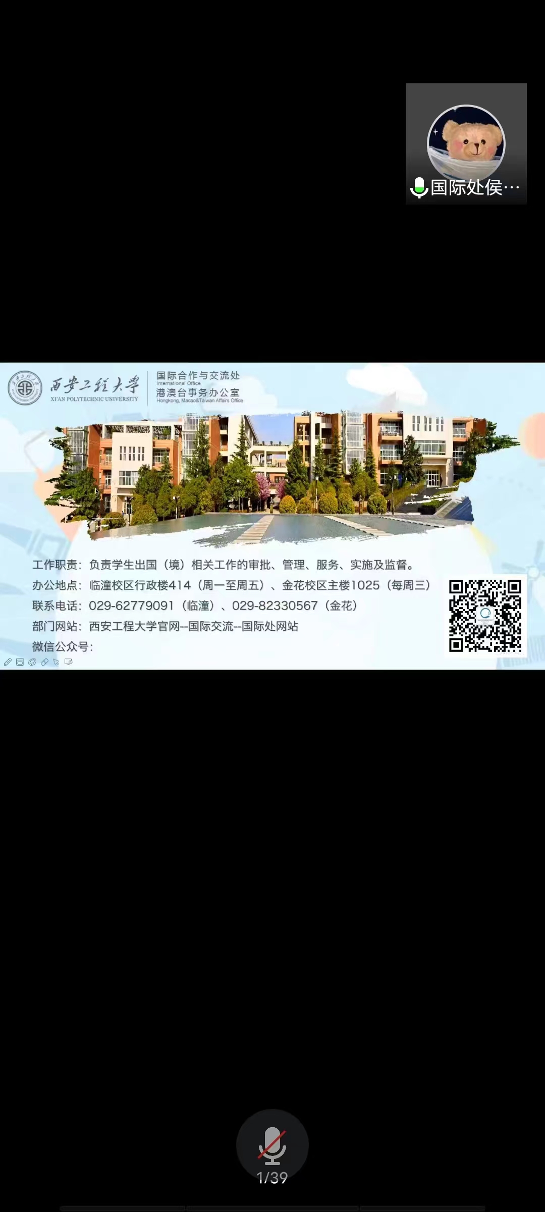 随后,98堂 国际与交流处侯梦来老师就我校出国境留学项目、2+2双学位项目、资助政策、出国境学生服务及管理文件进行宣讲。