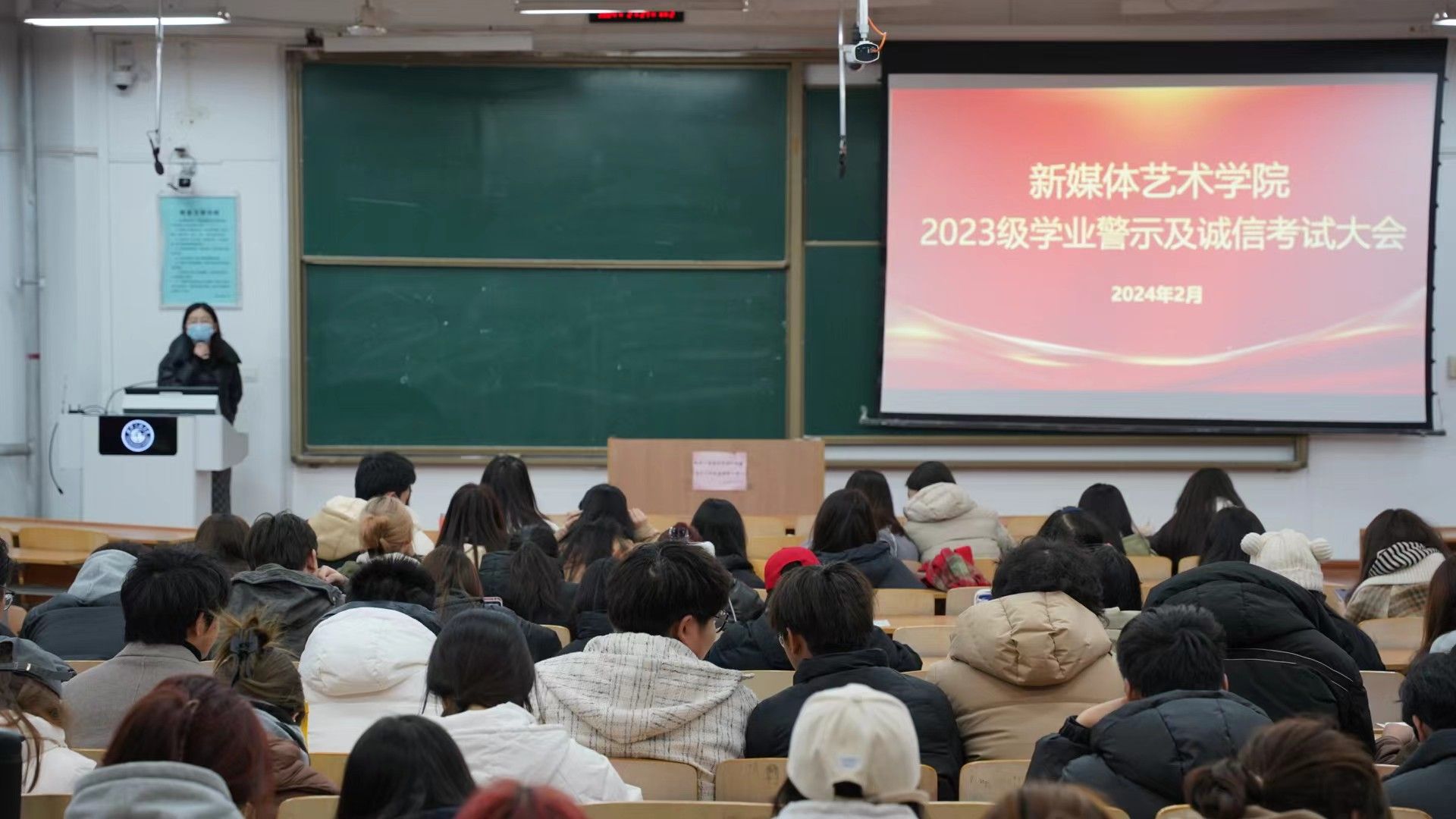 为帮助学生更好地规划学业,提高学习质量,推进学风建设,引导学生树立积极端正的学习态度,提高学业困难学生的学习积极性,从而保障98堂 的教育教学质量和人才培养质量。98堂 于2024年2月27日在临潼、金花两校区教学楼召开2023级学生学业警示及诚信考试大会,98堂 党委副书记赵文熙、辅导员宾田田及98堂 2023级全体学生参加。