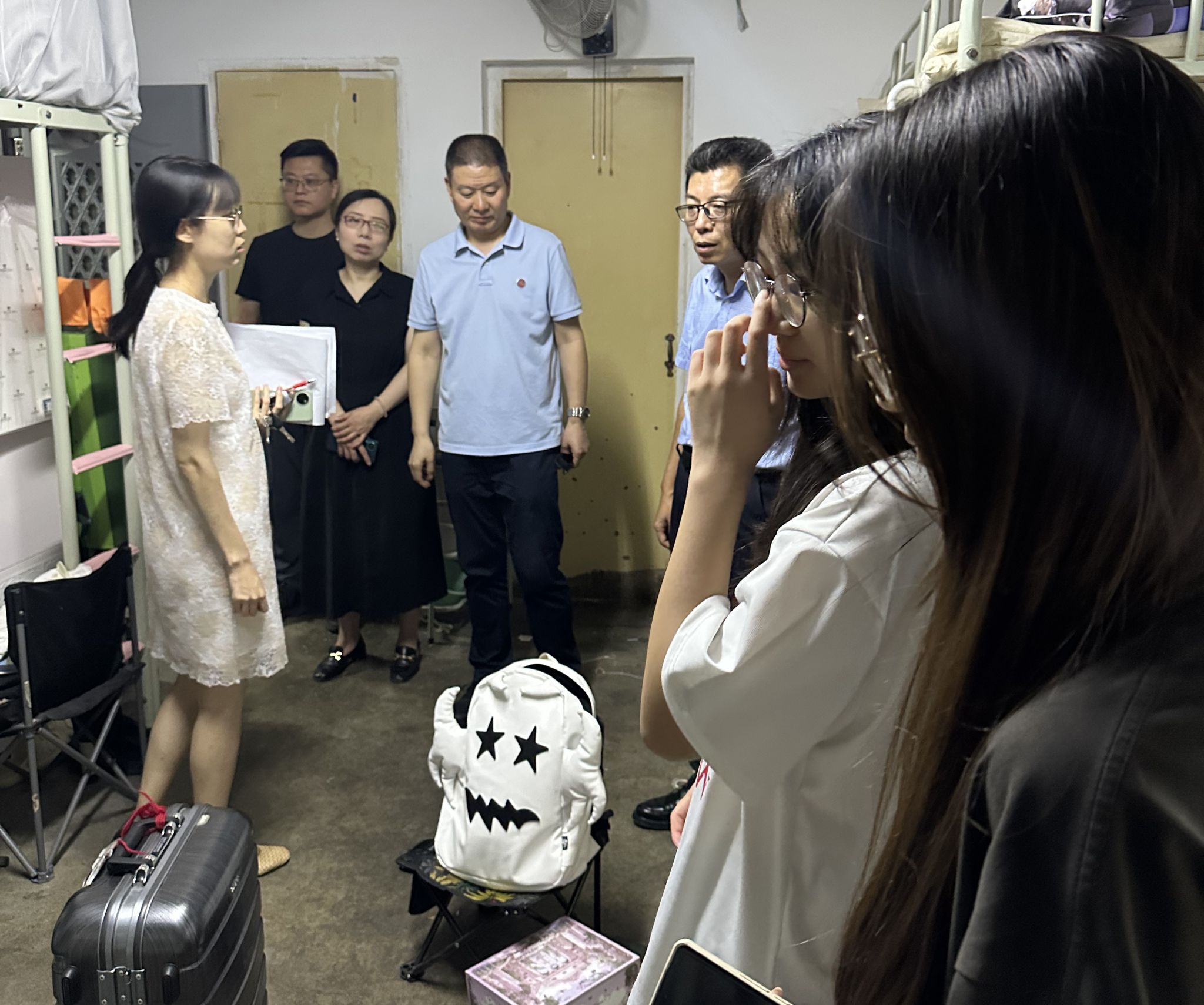 深入学生宿舍:7月11日上午,98堂 班子成员及辅导员深入学生宿舍,对专业分流搬迁学生进行了慰问,对留校学生宿舍情况进行了安全检查,检查过程中,班子成员与专业分流学生、留校学生进行了交流,鼓励同学们好好学习,利用假期,努力提升学业成绩。