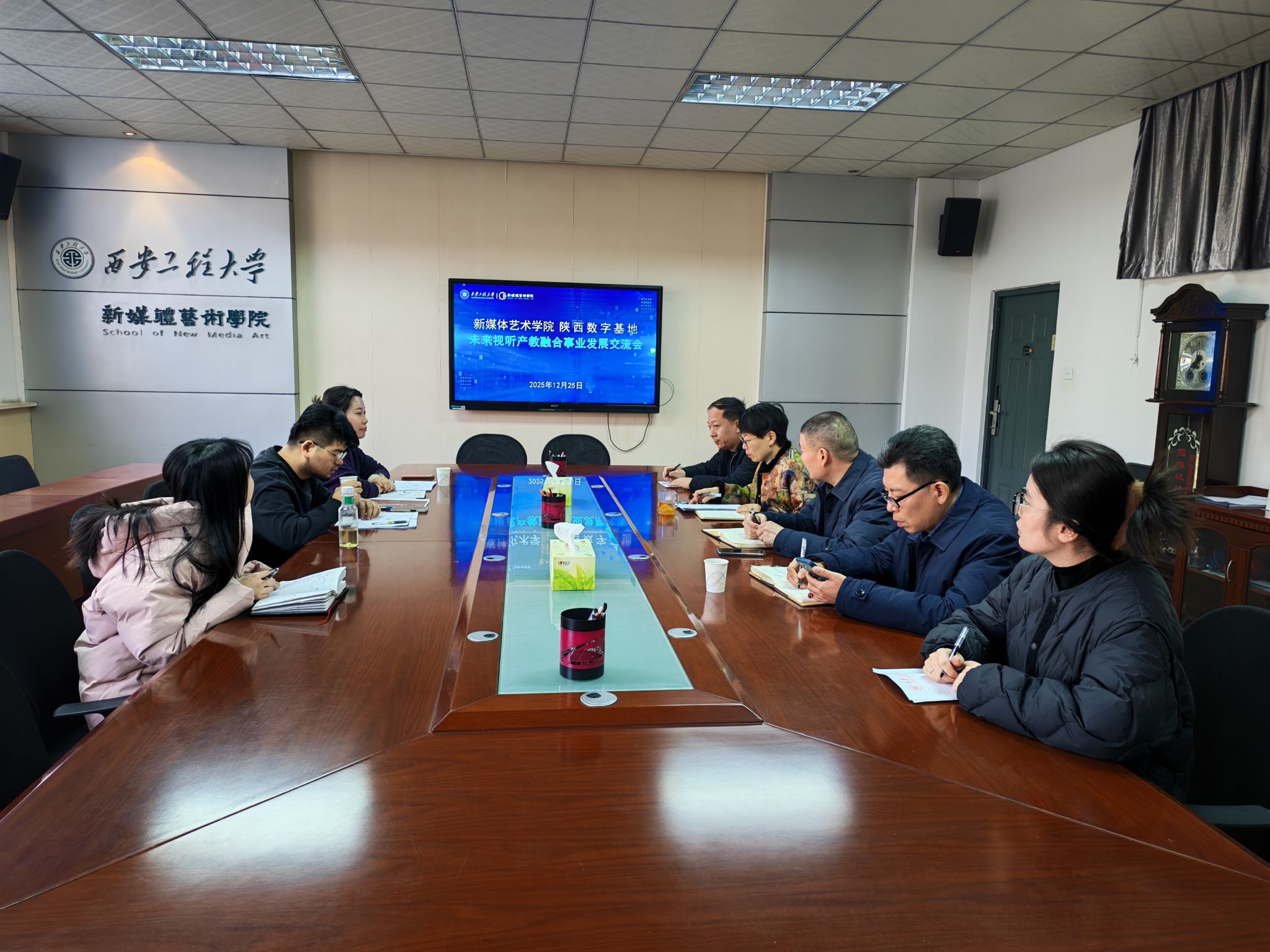 为深入推进98堂 产教融合事业发展,12月25日下午,学院邀请陕西数字基地负责人王奕然及相关项目人员来院交流。98堂 领导班子成员、院办主任、就业工作辅导员、学院科研秘书参加会议,院党委副书记赵文熙主持会议。