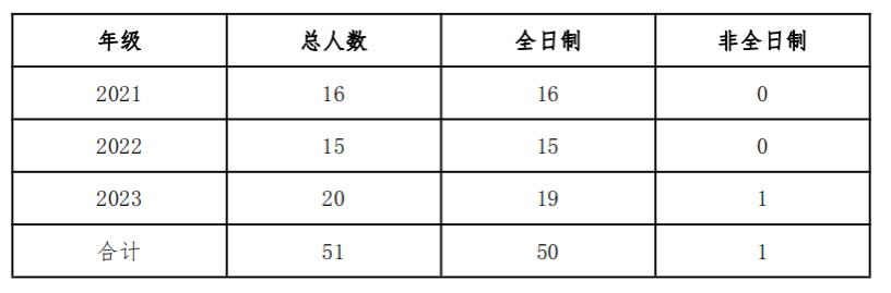 2023年学位点21、22、23级在校生共51人,各级学生分布情况如下: