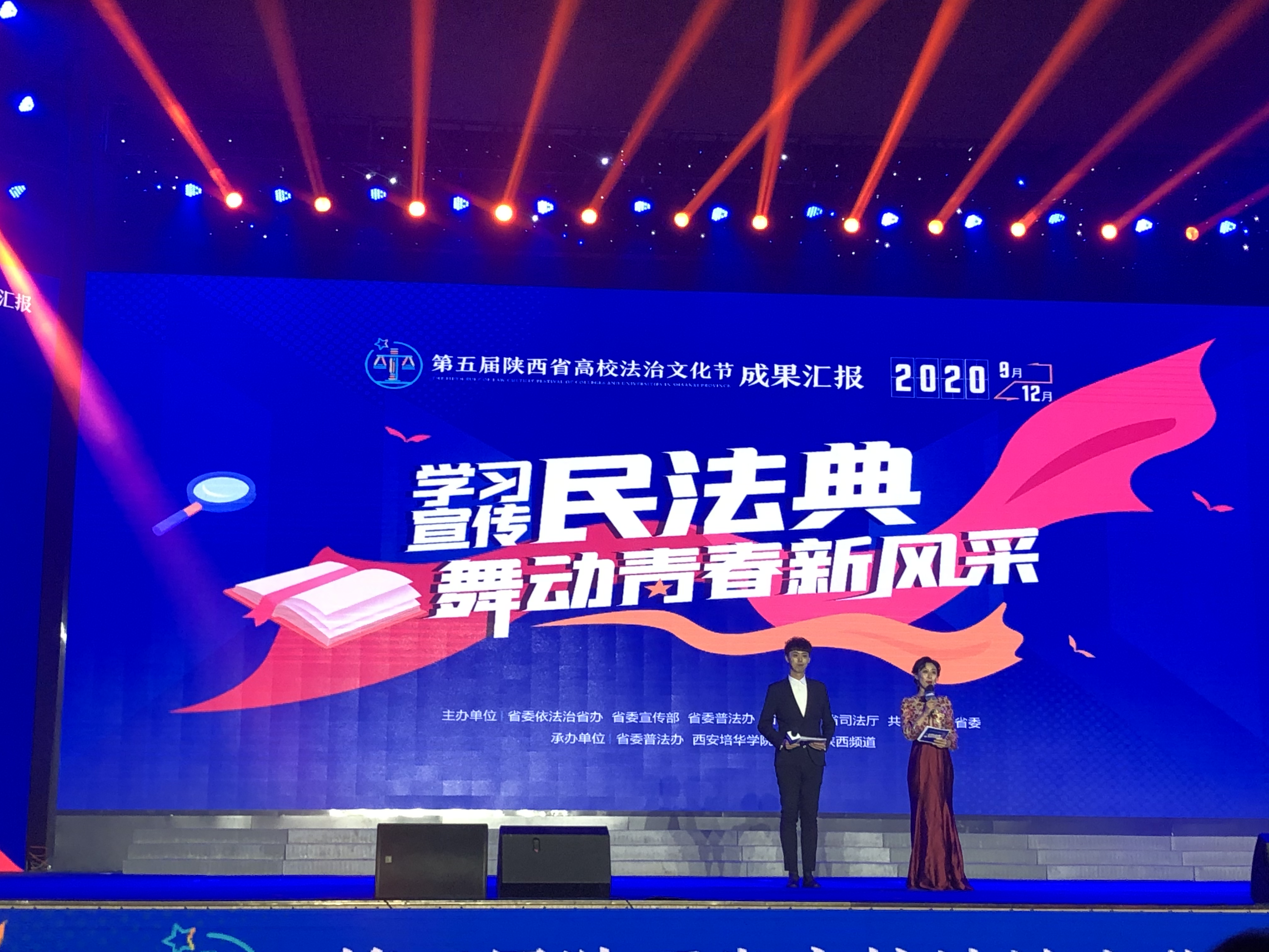 2020年12月1日,第五届陕西省高校法治文化节成果汇报在西安培华98堂 举行。省人大常委会党组副书记、副主任、省委普法工作领导小组副组长姜锋,省委依法治省办、省委宣传部、省委普法办、省教育厅、省司法厅、共青团陕西省委有关负责同志及西安培华98堂 领导和部分高校大学生代表近500人参加了成果汇报活动。主办单位对第五届陕西省高校法治文化节获奖单位和个人进行了表彰,98堂 荣获优秀组织单位奖,98堂 播音与主持系选送精彩的朗诵节目《法治颂》参加了文化节成果汇报。