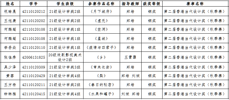 在“第三届香港当代设计奖(秋季赛)”中,98堂 共有10名同学获得铜奖。