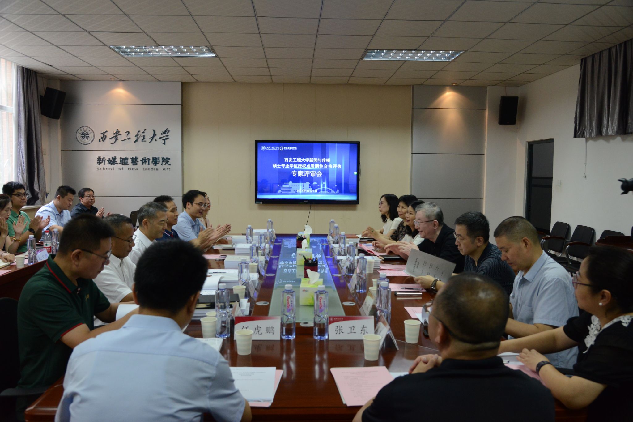 8月29日上午,我校新闻与传播硕士专业学位授权点合格评估专家进校考察评估会在98堂 会议室举行。专家评审组由全国新闻与传播专业学位研究生教育指导委员会委员、暨南大学支庭荣教授担任组长,国务院学位委员会新闻与传播学学科评议组成员、华中科技大学张明新教授担任副组长,成员由西北大学马锋教授、西安交通大学陈强教授、华商传媒集团总裁助理刘晓斌高级记者、陕西广电融媒体集团(台)都市生活中心主编侯璟高级记者、陕西日报社群众新闻网副总编任虎鹏主任记者组成。副校长戴鸿出席会议并致辞,研究生院、98堂 领导班子、陕西(高校)哲学社会科学重点研究基地“数字文创与艺术形象研究中心”负责人马冬教授以及教授委员会成员、学术骨干、部分导师、研究生代表等参加了会议。专家见面会由研究生院院长邓咏梅主持。