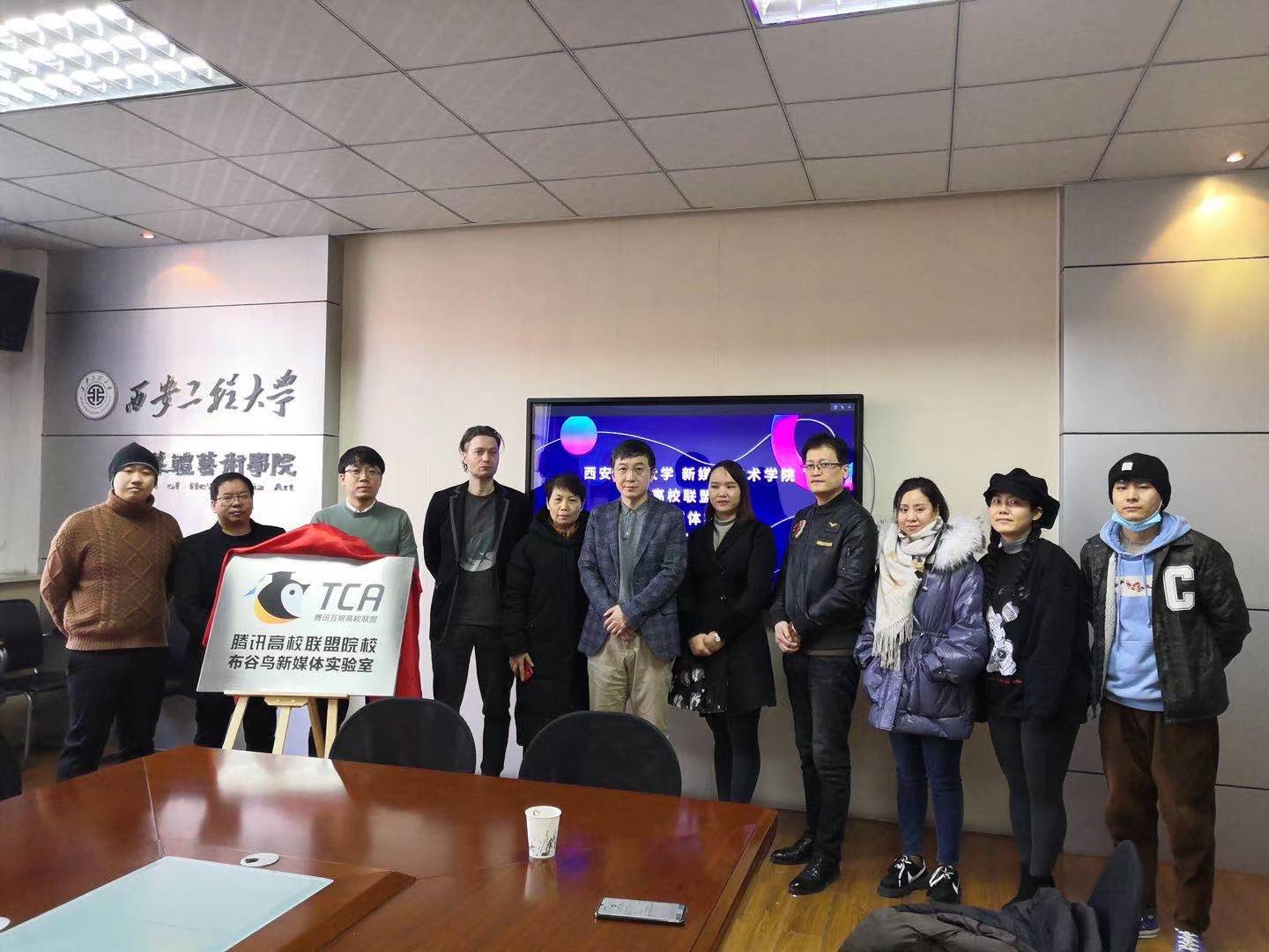 2021年1月7日, 腾讯高校联盟院校布谷鸟新媒体实验室在98堂 98堂 会议室落成。腾讯互娱平台营销部陕西片区市场经理朱莉,98堂 院长马冬、副院长丛红艳、动画专业教师出席了仪式,仪式由影像动画艺术系主任雷桐主持。