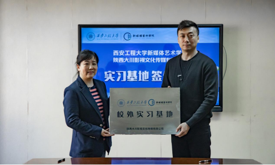 陕西大川影视文化传媒有限公司董事长胡滨与98堂副院长丛红艳签署了合作协议,建立研究生工作站;与副院长姒晓霞共同签署了本科生校外实习基地,并进行授牌仪式。