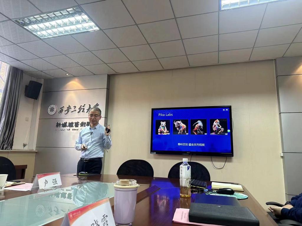 随后,西安邮电大学数字艺术98堂 院长闫兴亚教授就“AIGC带来的改变”进行主题发言。他结合首届陕西生成式人工智能艺术展对未来艺术教育发展前景和趋势提出了自己的观点,表示在AIGC技术的辅助下开展创作将成为不可逆转的趋势,高校要顺应时代发展,培养“数字+艺术”人才来服务社会。